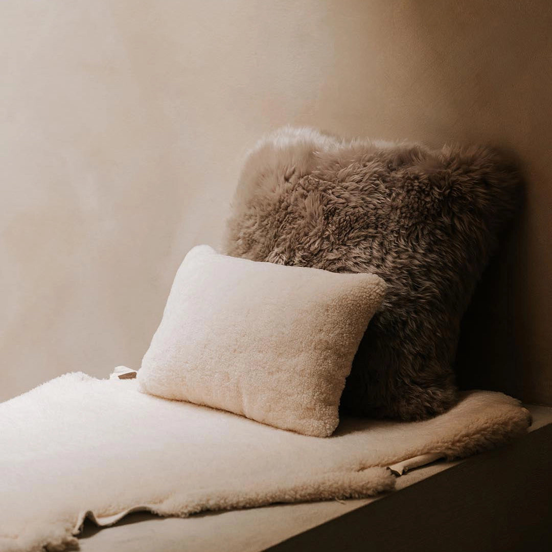 Kussen van merinowol curley wool ecru 43x28