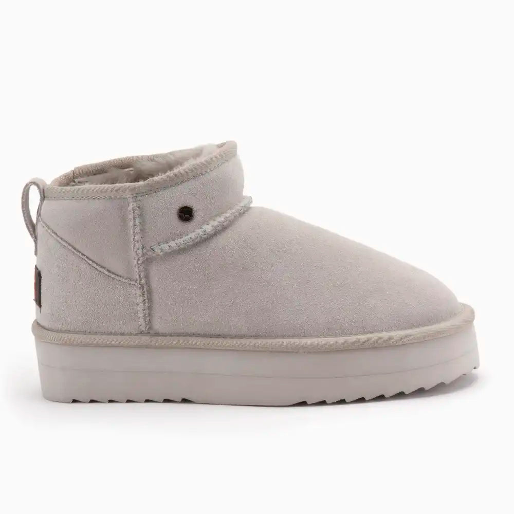 De boots zijn gemaakt van hoogwaardig suède, wat zorgt voor een luxe uitstraling en langdurige kwaliteit. De binnenvoering van 100% Merino schapenwol biedt uitzonderlijke warmte en ademend vermogen, zodat je voeten altijd comfortabel en goed geventileerd blijven. De robuuste plateauzolen bieden niet alleen extra hoogte, maar ook uitstekende grip en stabiliteit, zodat je veilig en met vertrouwen kunt stappen, ongeacht het terrein.