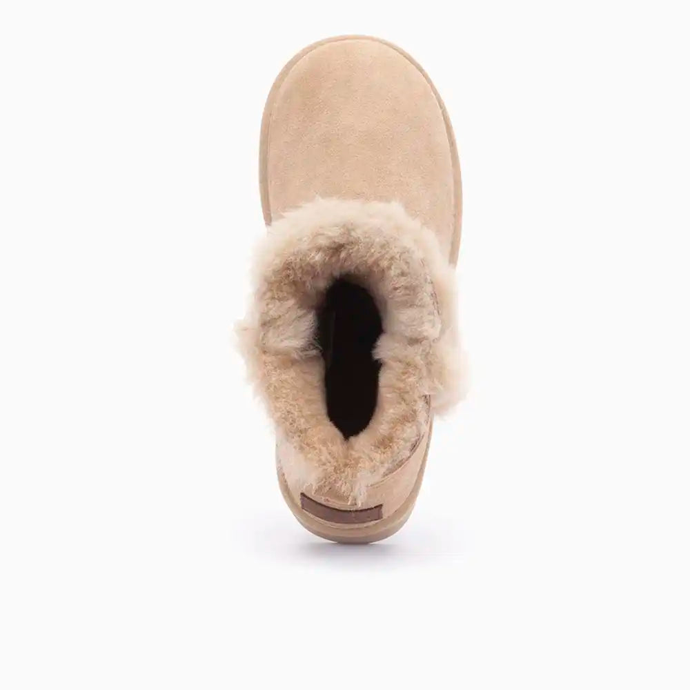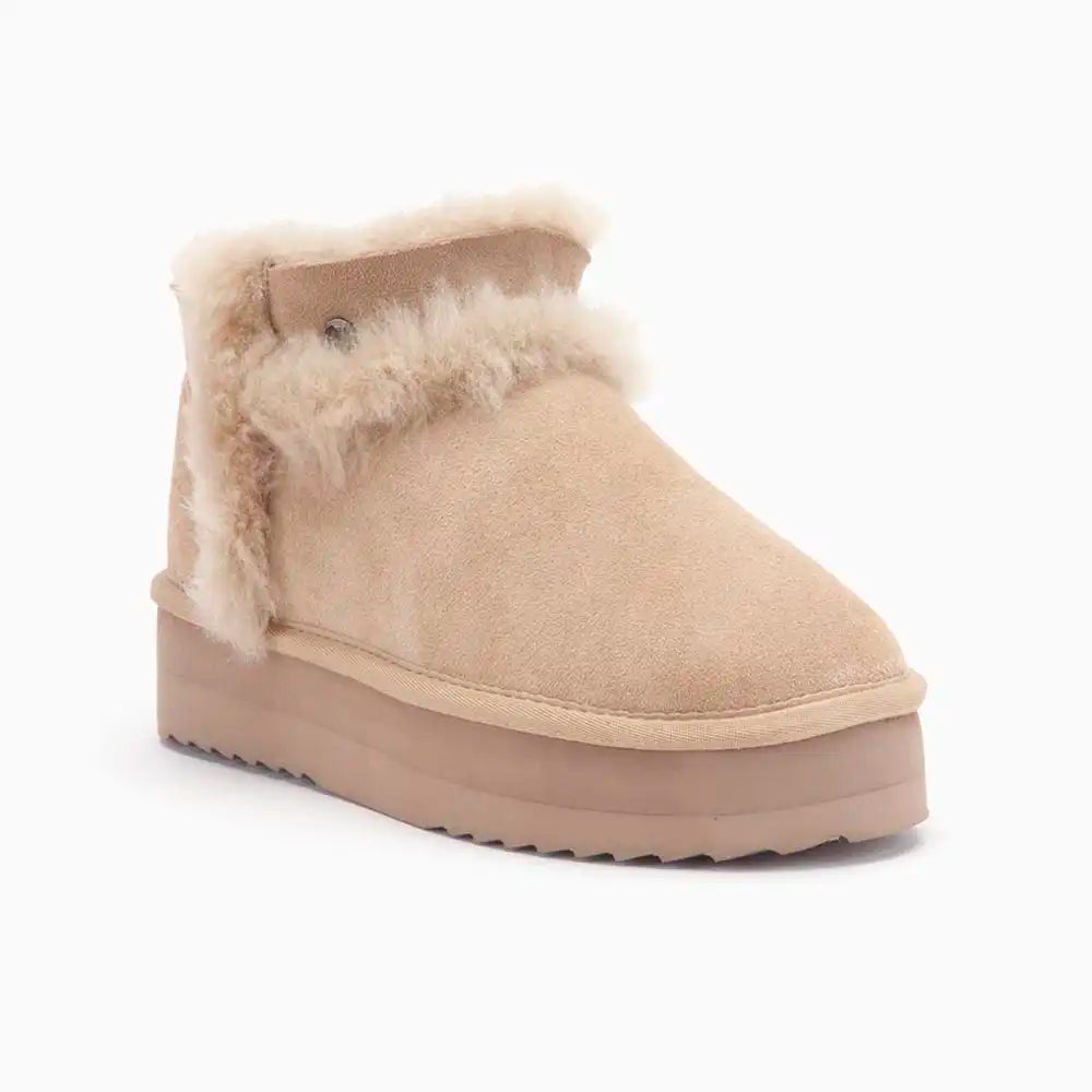 De boots zijn vervaardigd uit hoogwaardig suède, wat zorgt voor een zachte, verfijnde uitstraling en langdurige kwaliteit. De binnenvoering van 100% Merino schapenwol biedt een uitstekende isolatie en ademend vermogen, zodat je voeten comfortabel en droog blijven, zelfs op de koudste dagen. De stevige plateauzolen geven extra hoogte en zorgen voor een uitstekende grip, zodat je elke stap met vertrouwen kunt zetten, zowel binnen als buiten.