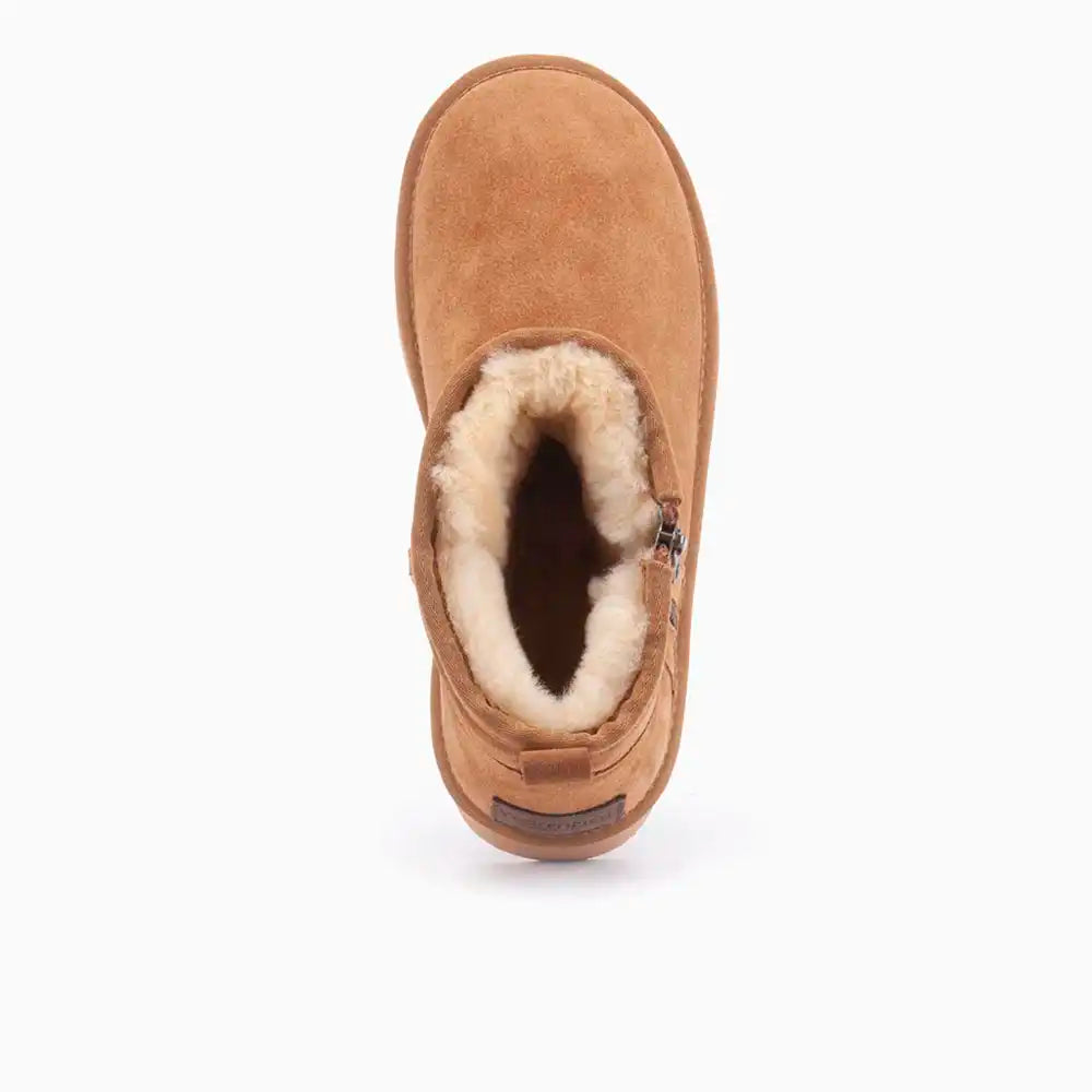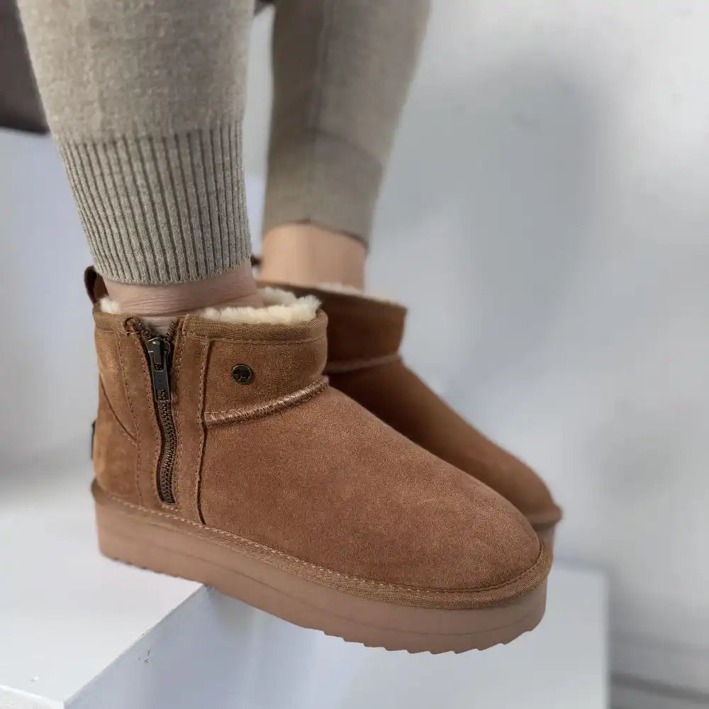 De boots zijn gemaakt van hoogwaardig suède, wat zorgt voor een luxe uitstraling en langdurige kwaliteit. De binnenvoering van 100% Merino schapenwol biedt uitzonderlijke warmte en ademend vermogen, zodat je voeten altijd comfortabel en goed geventileerd blijven. De robuuste plateauzolen bieden niet alleen extra hoogte, maar ook uitstekende grip en stabiliteit, zodat je veilig en met vertrouwen kunt stappen, ongeacht het terrein.