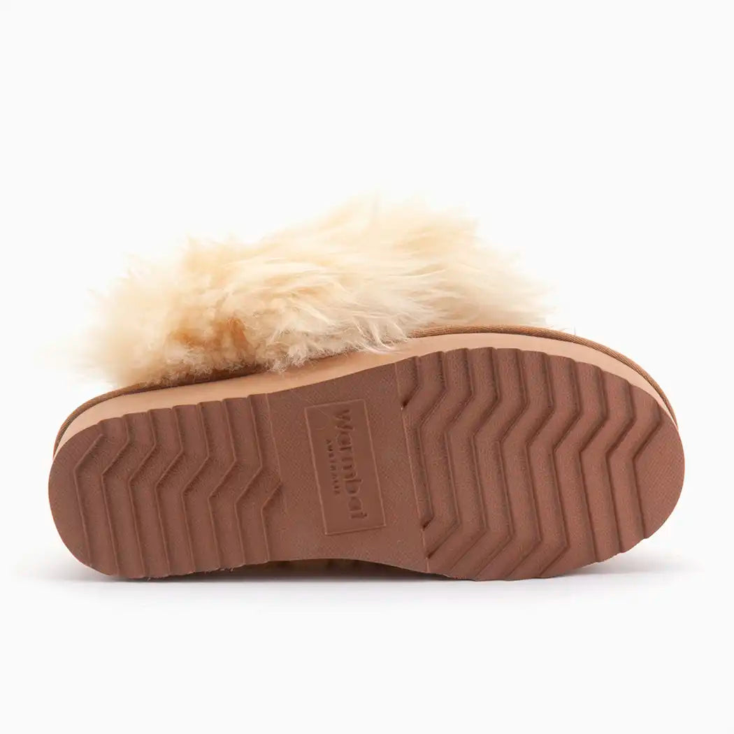 De stevige plateauzool biedt extra hoogte en een trendy look, terwijl de flexibele zool voldoende grip biedt voor veilig gebruik binnenshuis. De Wagga pantoffels zijn perfect voor wie luxe zoekt, zonder in te boeten op comfort en stijl.