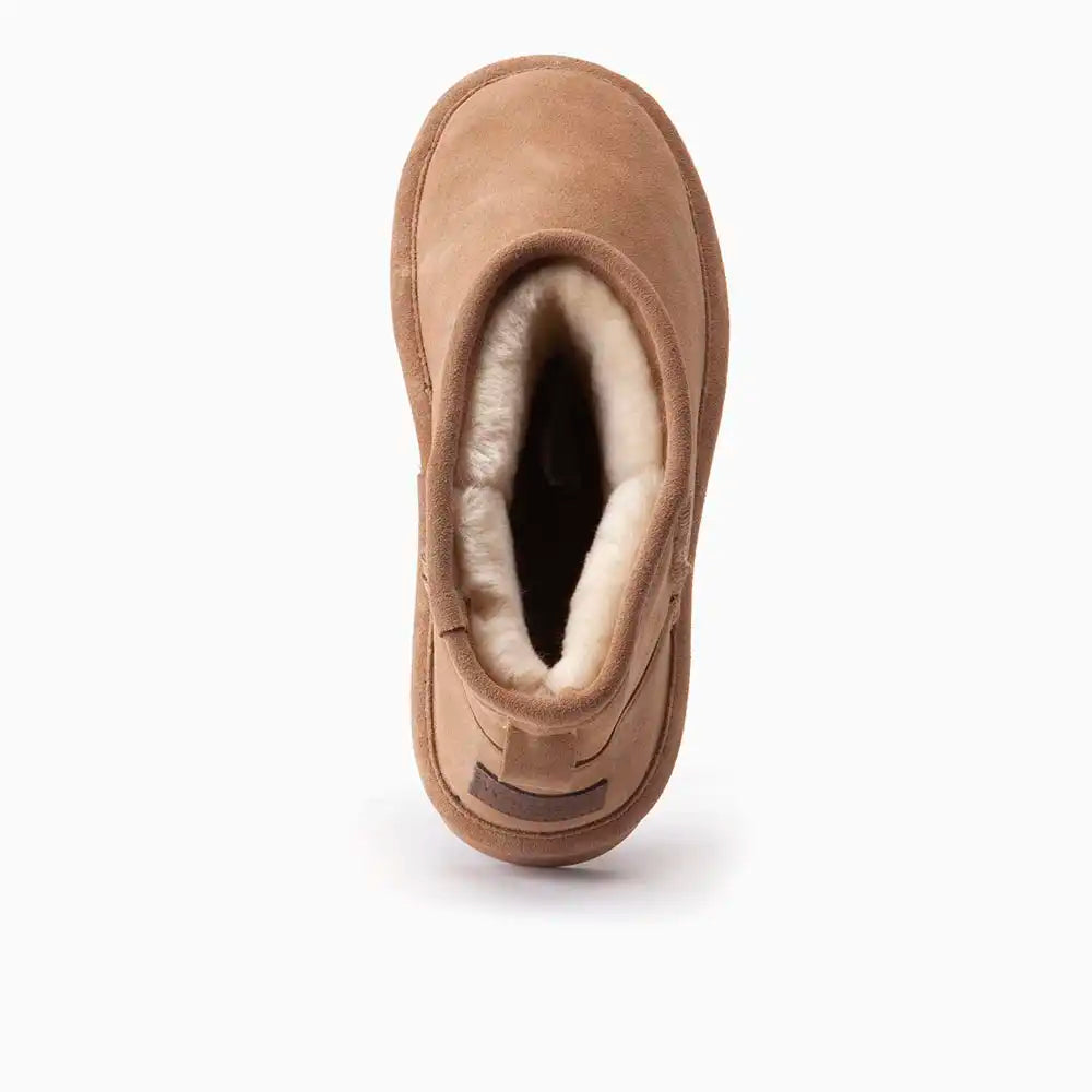 Deze Wallaby boots zijn ideaal voor het op temperatuur houden van de voeten en verkrijg voor het hele gezin. Dit halfhoge model heeft een verhoogde wreef. De binnenvoering en binnenzool van deze pantoffels zijn gevoerd met de isolerende en natuurlijke thermostatische 100% Merino schapenwol. Een licht, sterk en soepel materiaal dat zorgt voor een zacht gevoel. De boots zijn voorzien van een water-repellent coating, waardoor ze waterbestendig zijn.