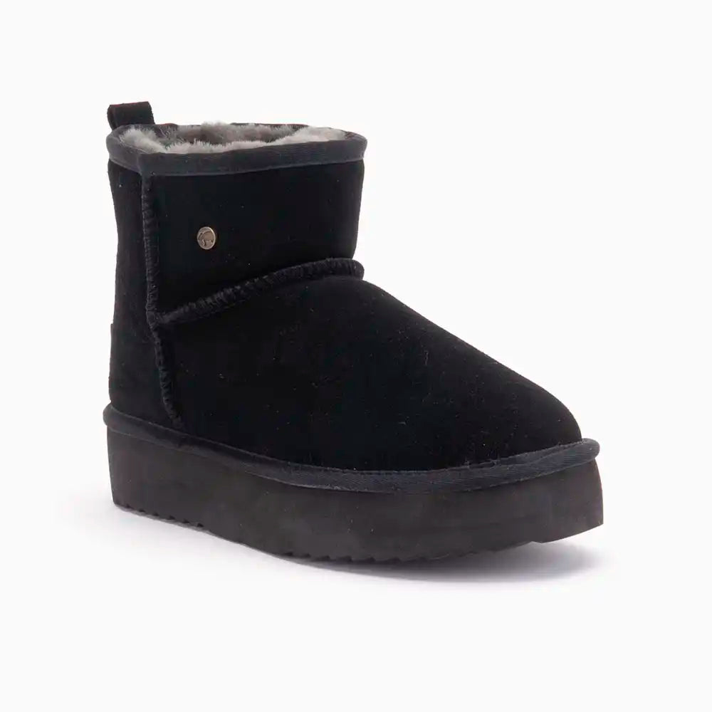 De Warmbat Wallaby Dames Suede Boot Plateau is de perfecte mix van comfort en moderne stijl. Deze boots zijn gemaakt van zacht suède en voorzien van een binnenvoering van 100% merinowol, die je voeten de hele dag warm houdt. Merinowol staat bekend om zijn ademend vermogen en temperatuurregulerende eigenschappen, waardoor je voeten altijd op de juiste temperatuur blijven, ongeacht het weer.