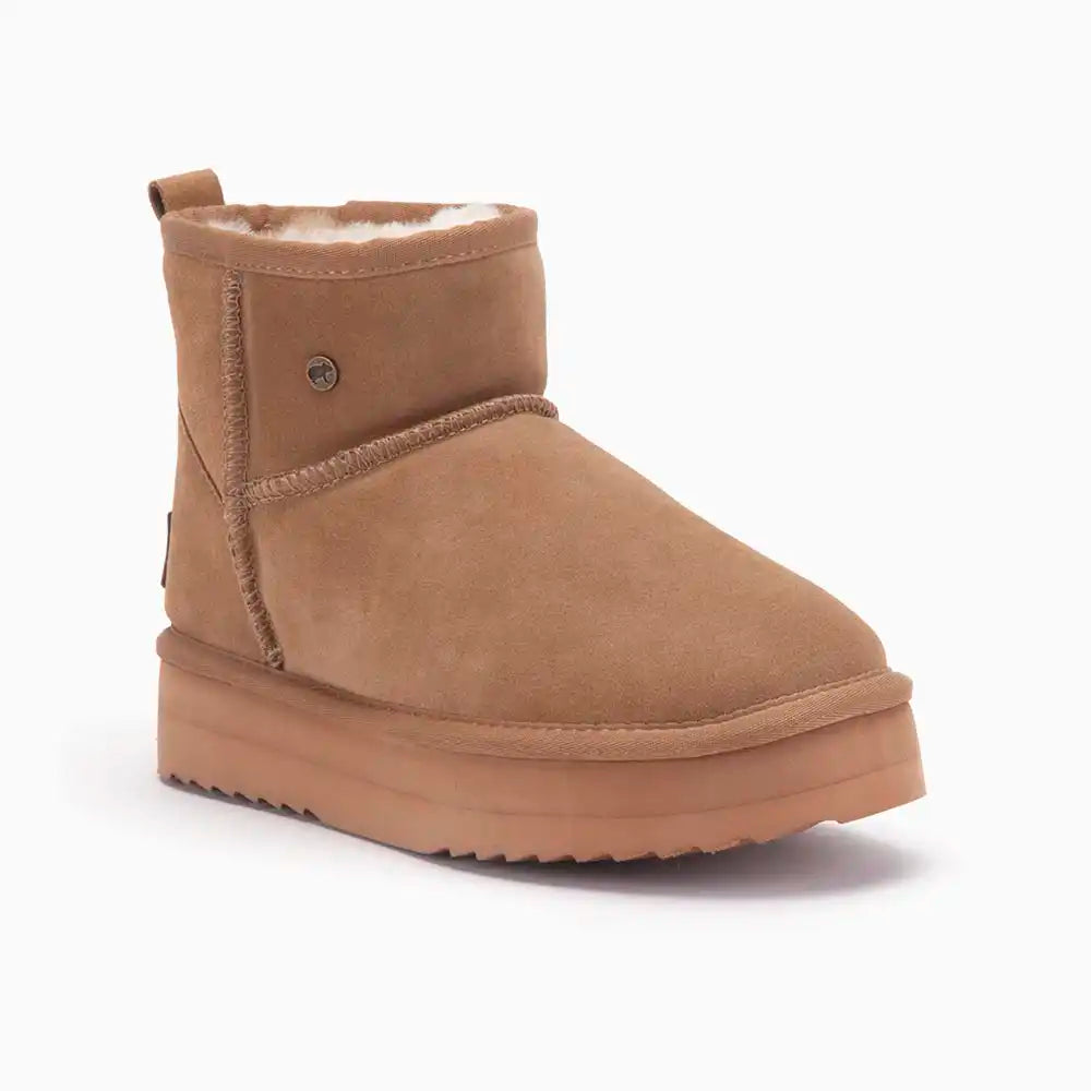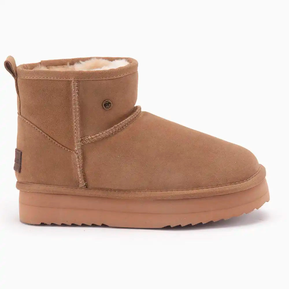 De Warmbat Wallaby Dames Suede Boot Plateau is de perfecte mix van comfort en moderne stijl. Deze boots zijn gemaakt van zacht suède en voorzien van een binnenvoering van 100% merinowol, die je voeten de hele dag warm houdt. Merinowol staat bekend om zijn ademend vermogen en temperatuurregulerende eigenschappen, waardoor je voeten altijd op de juiste temperatuur blijven, ongeacht het weer.