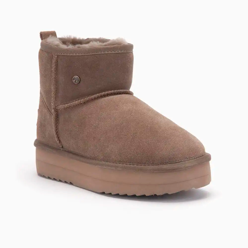 De Warmbat Wallaby Dames Suede Boot Plateau is de perfecte mix van comfort en moderne stijl. Deze boots zijn gemaakt van zacht suède en voorzien van een binnenvoering van 100% merinowol, die je voeten de hele dag warm houdt. Merinowol staat bekend om zijn ademend vermogen en temperatuurregulerende eigenschappen, waardoor je voeten altijd op de juiste temperatuur blijven, ongeacht het weer.