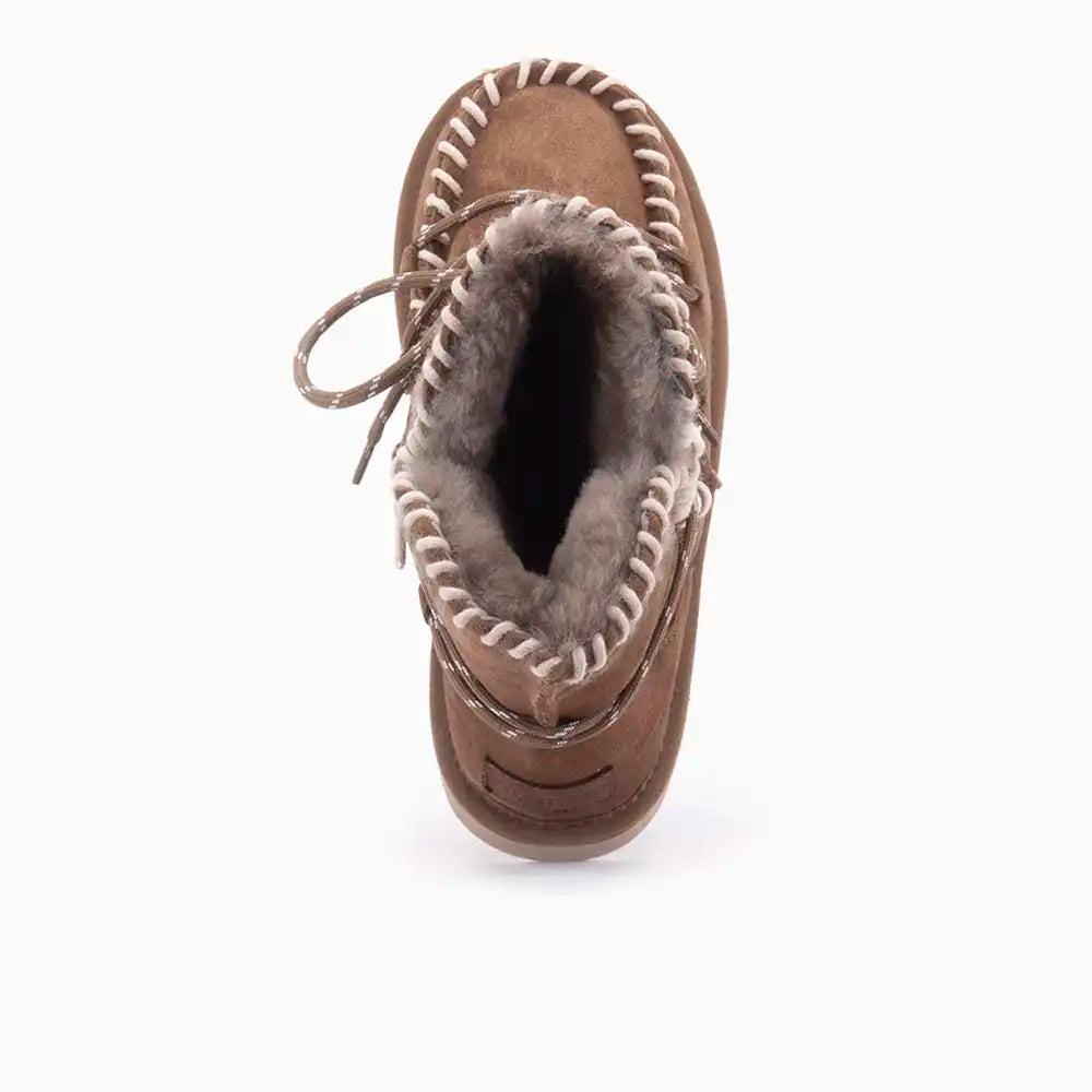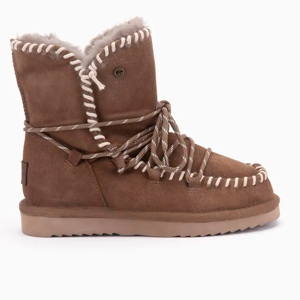 De Warmbat Waturra Dames Suede Lace Boot is de perfecte balans tussen luxe en functionaliteit. Deze stijlvolle boots zijn gemaakt van hoogwaardig suède en gevoerd met 100% merinowol, die je voeten de hele dag warm en comfortabel houdt. Merinowol is ademend, zacht en temperatuurregulerend, waardoor je voeten altijd op de juiste temperatuur blijven, of je nu binnen ontspant of een buitenwandeling maakt. De stevige zool biedt uitstekende grip en stabiliteit, terwijl de combinatie met het stoere ontwerp de Waturra Lace Boot tot een veelzijdige must-have maakt. Perfect voor de koudere maanden, of je nu een casual look hebt of juist iets meer gekleed wilt gaan.