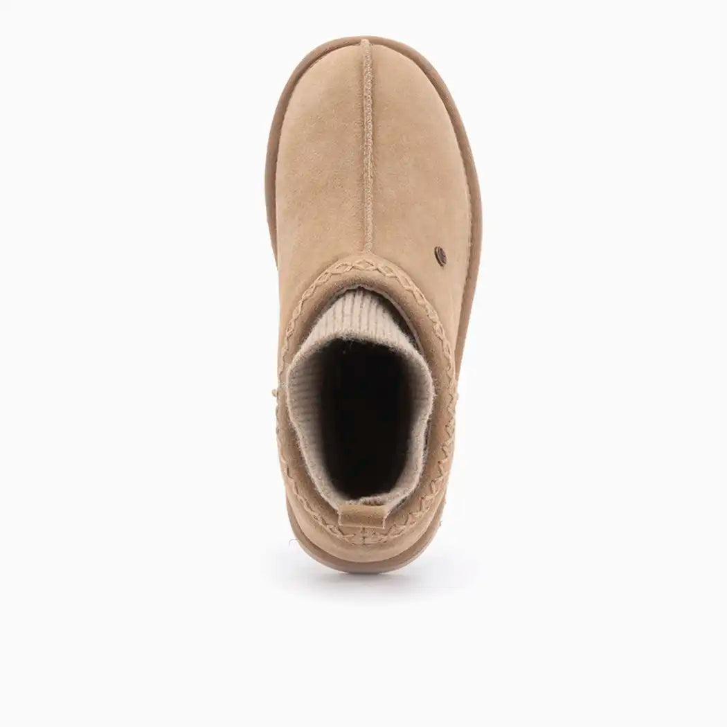 De opvallende sokkraag (cuff) geeft niet alleen een gezellige look, maar zorgt ook voor extra warmte rond je enkels. Perfect voor koude ochtenden en ontspannen avonden thuis.