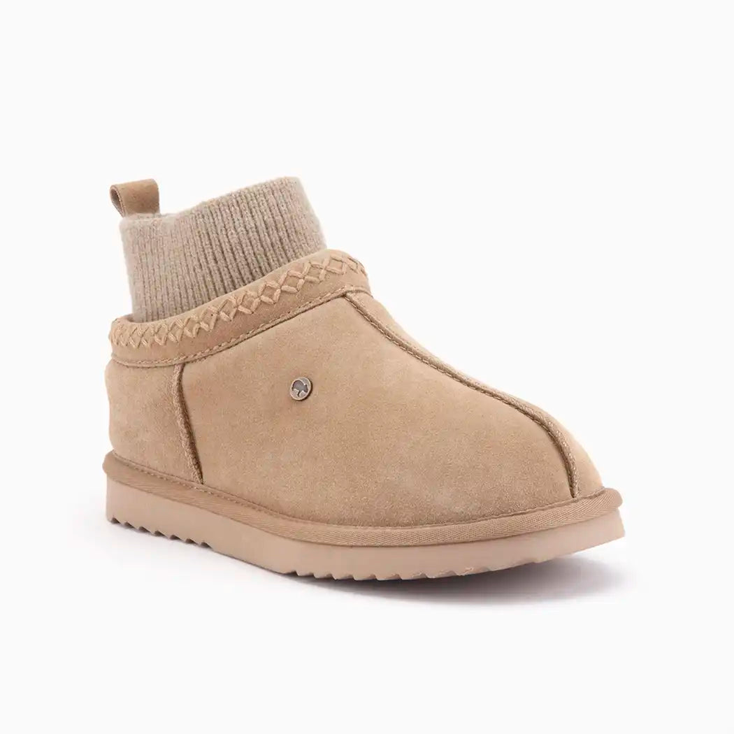 Geniet van ultiem comfort met de Zanthus damespantoffel. Deze luxe pantoffel is uitgevoerd in soepel suède en gevoerd met 100% Merino schapenwol, warm, ademend en heerlijk zacht aan je voeten.